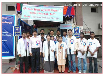 Many public education activities are done every day and intensively during the world stroke day activities. Stroke pamphlets and hoardings describing Stroke symptoms are distributed every day. Stroke risk assessment sheets are also available on request.